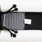 The Minnow is an ultra light packraft which focusses on keeping weight to a minimum whilst maintaining a comfortable paddling position. Using ultra-thin fabric, the packraft is only 1.86kg (white) or 2.12kg (olive) when equipped with the skeg and packs impressively small – you will barely notice you are carrying it on or in your backpack (removing the skeg drops the weight by 86g). The seating position is slightly further forward than the traditional packraft design, improving paddling efficiency and directional stability.
