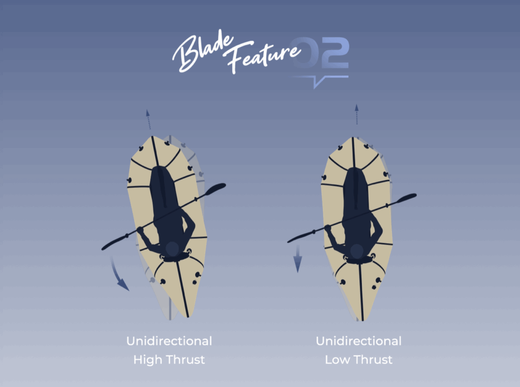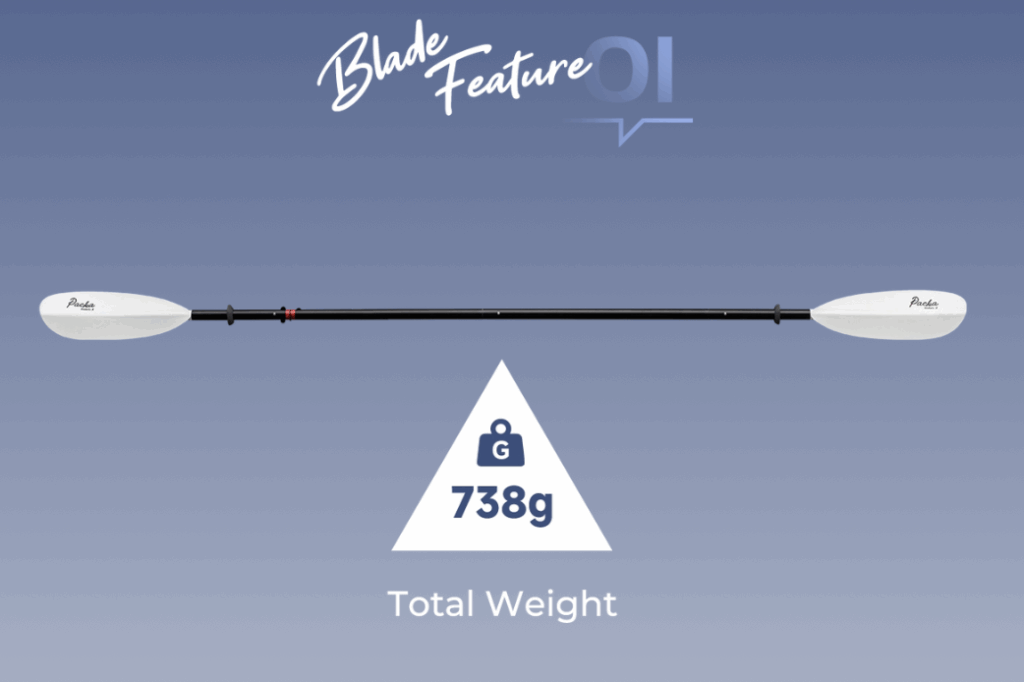 These blades are not scaled-down versions of larger paddles. The curvature of the blade’s arc has been optimised to meet the new thrust requirements, ensuring a smoother and more efficient paddle stroke.